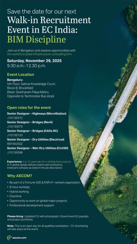 Walk-in Drive – BIM/Civil3D/MicroStation Designers (Highways / Bridges / Dry & Wet Utilities) – 29th Nov, Bengaluru