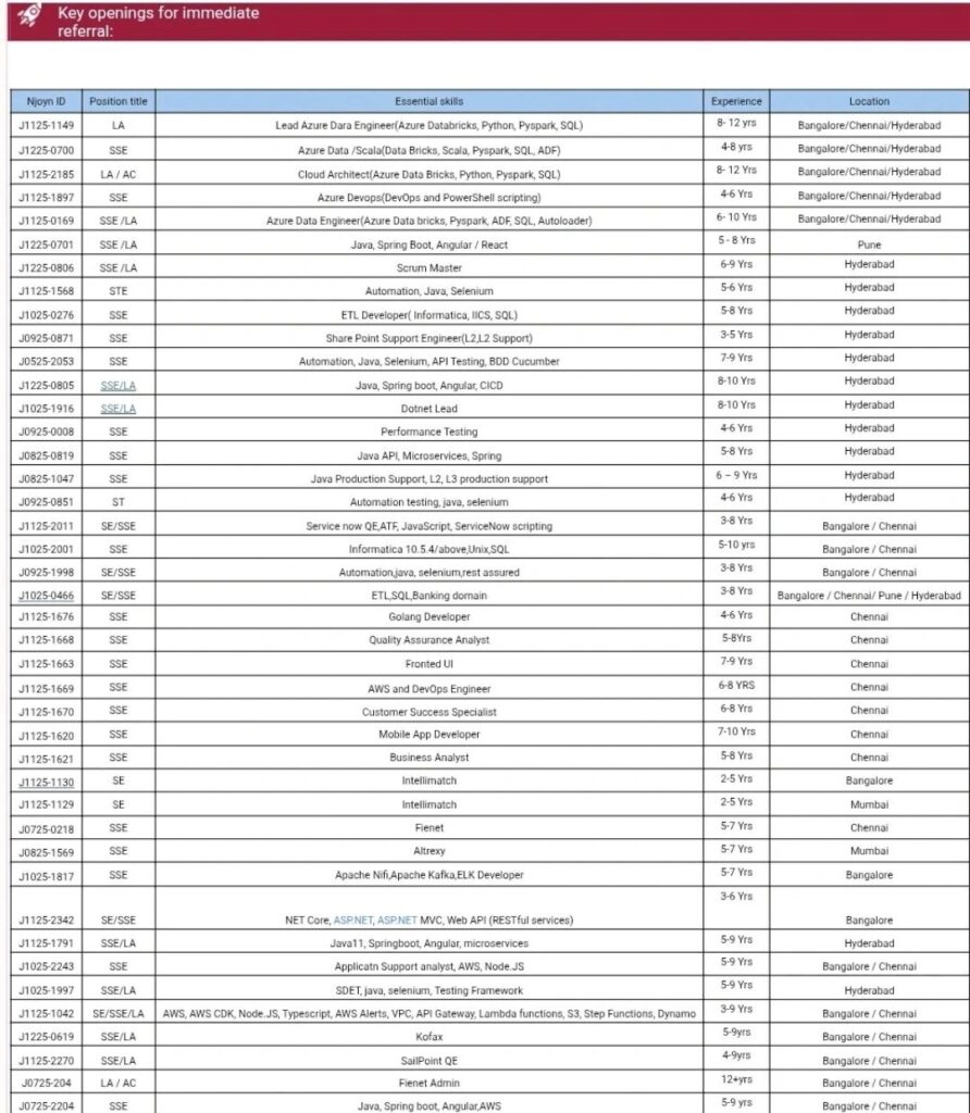 ​We are hiring across Cloud, Data, QA, Development, DevOps, Automation & Enterprise Platforms.